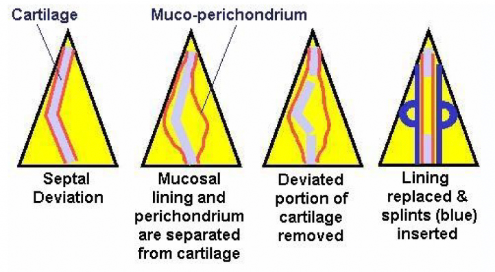 Nella tecnica tradizionale si scolla la mucosa di rivestimento (mucosal lining) del setto nasale, si rimuove la parte deviata del setto e si riposiziona la mucosa con punti riassorbibili. Al termine si posizionano tamponi nasali che vengono poi rimossi da 3 a 5 gg dopo.