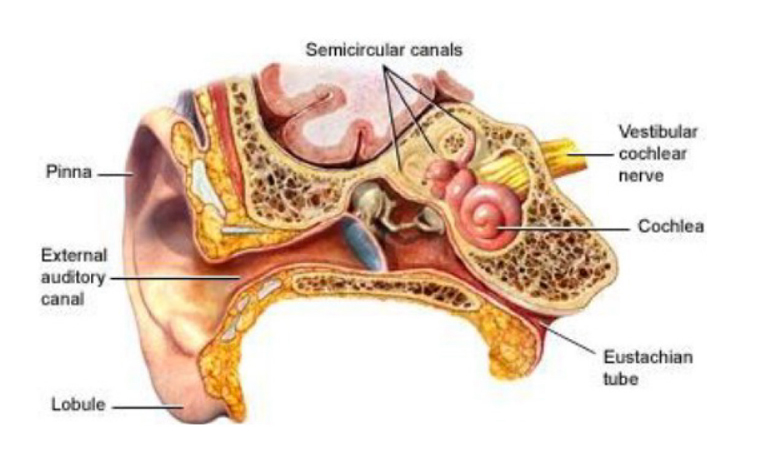 L’orecchio ha tre parti principali: l’orecchio esterno, medio, interno.