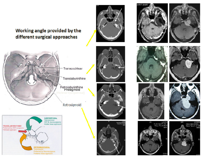 Questo approccio è un vantaggio notevole rispetto alla craniotomia della fossa media, che richiede una procedura più lunga, comporta rischi neurochirurgici.