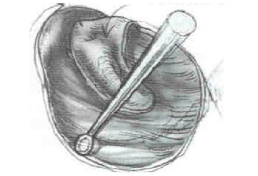 L’infezione dell’orecchio ha eroso l’incudine e tutta la sovrastruttura della staffa. La ricostruzione viene eseguita con il posizionamento di un frammento di osso rimodellato tra la parte inferiore della staffa ed il martello, sotto al timpano.