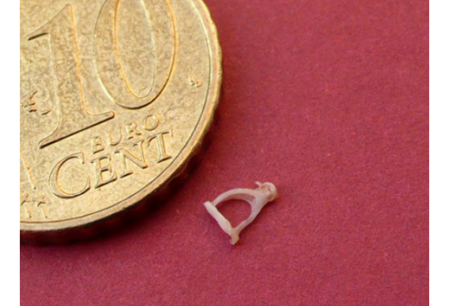 Fig. Le dimensioni degli ossicini in rapporto ad un dime Usa (come 10 cent di euro).