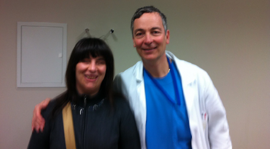 La gioia reciproca nei controlli a distanza postoperatori. Questa paziente (autorizzato da lei) a me molto cara perché non vedente, stava perdendo l’udito per una infezione cronica e lo ha completamente riacquistato dopo due timpano plastiche, precedute da un intervento di chirurgia naso paranasale perché l’ostruzione respiratoria era la causa della infezione e perforazione bilaterale dell’orecchio.