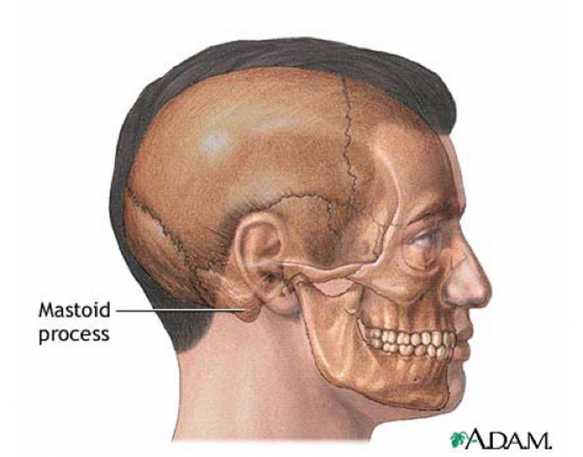 Mastoidit. Si nota il gonfiore ed il rossore della cute sopra la mastoide, dietro l’orecchio. Nella mastoide decorre il nervo facciale per cui si può avere paralisi facciale.